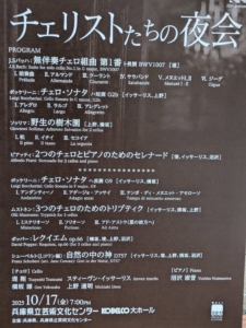 昨日(10/17)は、「チェリストたちの夜会」と銘打たれた演奏会の西宮公演に行ってきました。