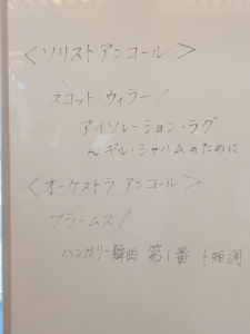 オケによるアンコールは、≪ハンガリー舞曲≫第1番。トライアングルがステージ上にいたからの選曲でもあったのでしょうか。