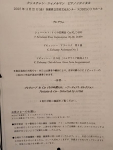 なお、アンコールは無し。なるほど、20曲続けて、アンコールに適していそうな作品を並べてのプログラミングでしたので、アンコールが無かったことも頷けます。