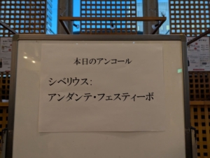 アンコールは、シベリウスの≪アンダンテ・フェスティーヴォ≫。オール・シベリウスが守られた格好になります。
