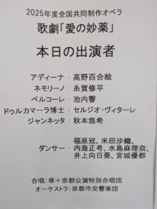 2025年度全国共同制作オペラ≪愛の妙薬≫の京都公演を観劇して