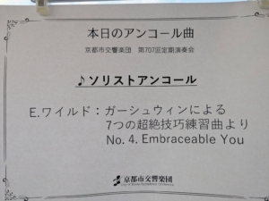 なお、ソリストアンコールとして、アール(Earl)・ワイルドというアメリカ人作曲家による≪ガーシュウィンによる7つの超絶技巧練習曲≫から第4番、という作品が弾かれました。